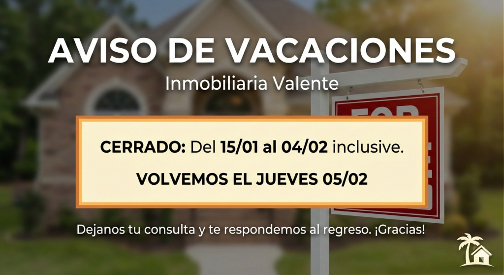 ​Desde el Jueves 15/01 hasta el Miércoles 04/02 inclusive, nuestras oficinas estarán cerradas por vacaciones.